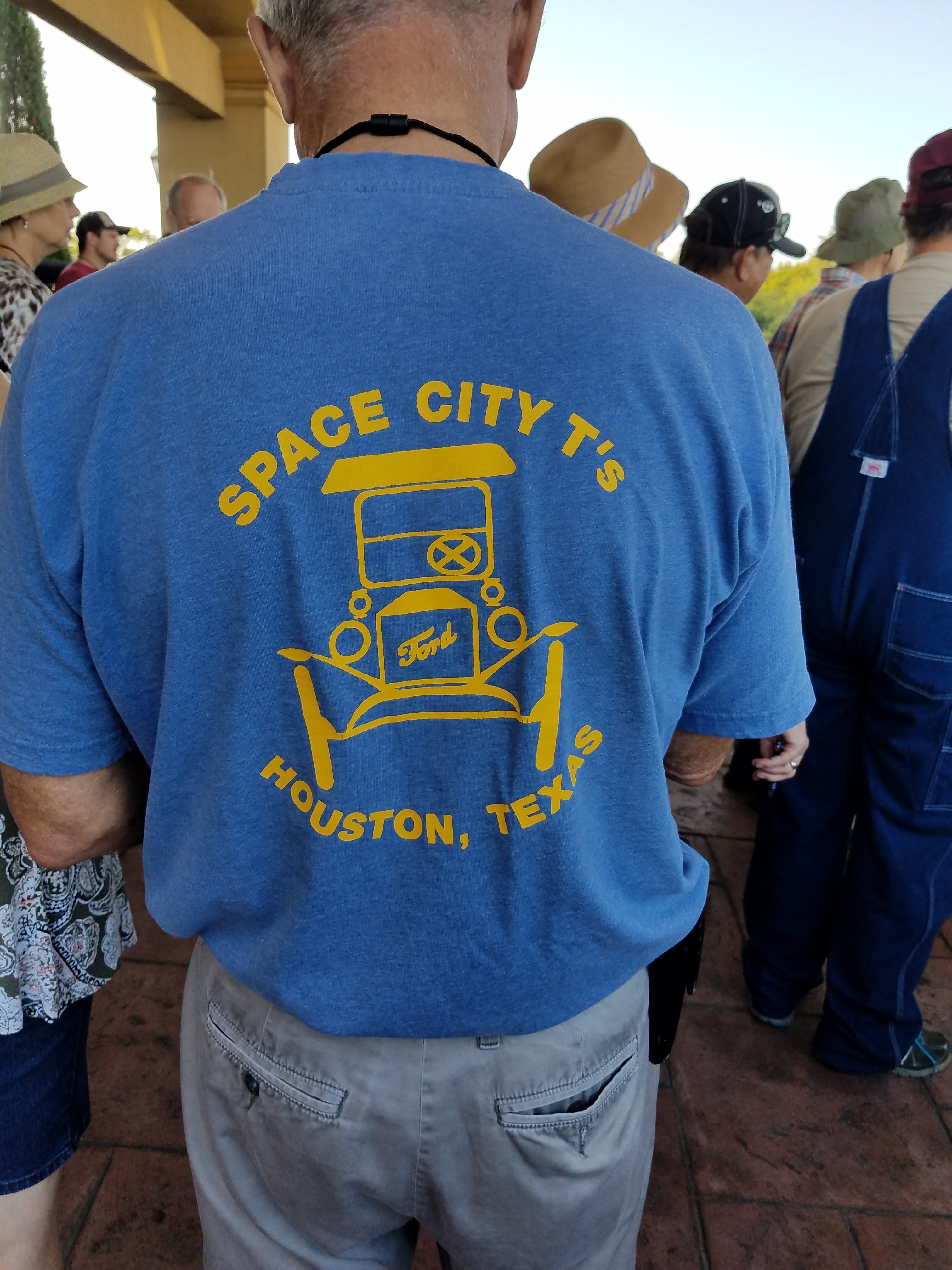 Category:EventThe Space City T’s, the Houston chapter of the Model T Ford Club of America, held this year’s Texas T Party event in Brenham, Texas, October 9-12. Chairpersons for 2019 were Dave Lucas, Rick McCracken and David Carter. Coordination of routes, accommodations, and food for over 97 cars and 200 people was handled skillfully by this group, resulting in a very smooth four day tour. Sandra Lucas, Naomi McCracken, Nancy Carter and Jim & Sandra Ruhmann were also instrumental with computer work and other coordinating. Many thanks to all of you for a great tour!